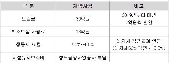 이와 관련한 소싸움경기시행자인 청도공영사업공사와 체결한 계약의 주요 내용은 아래와 같습니다.