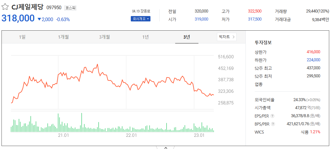 CJ제일제당 주가예측과 식품/바이오/물류사업